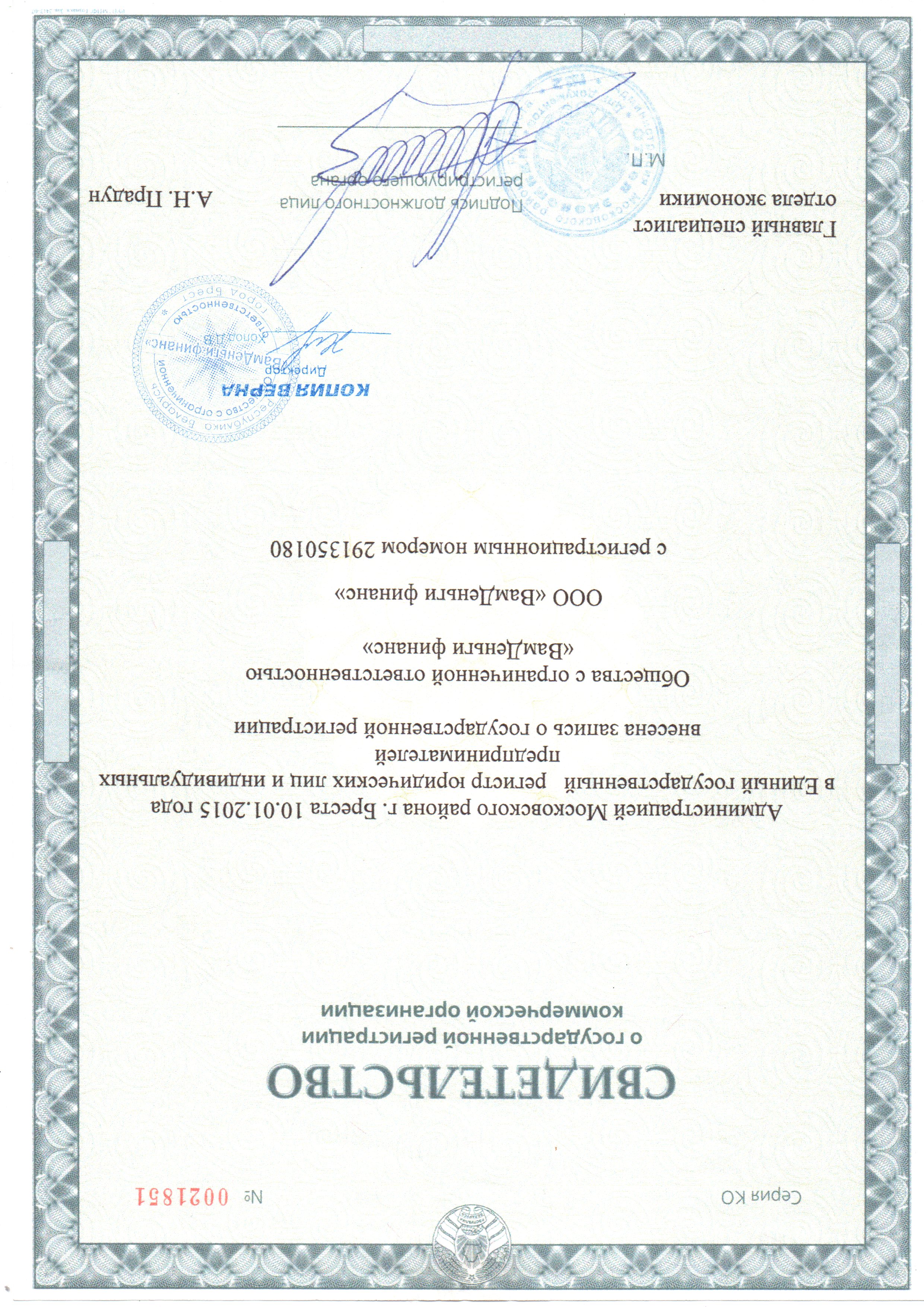 Полное наименование: Общество с ограниченной ответственностью «ВамДеньги финанс»